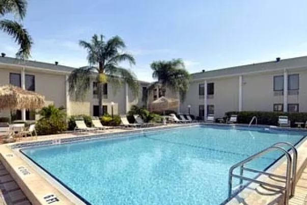 Two-story hotel with rooms overlooking the tropical pool. Each room is appointed with microwave, refrigerator...